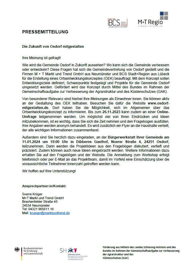 Pressemitteilung zum Auftakt des Ortsentwicklungskonzeptes